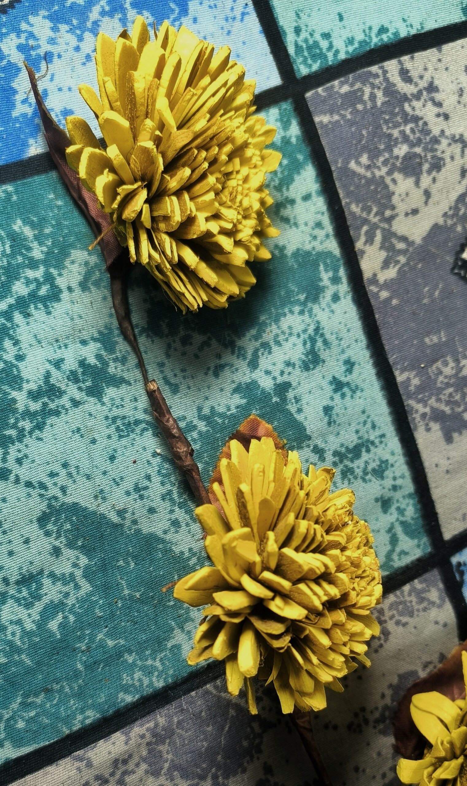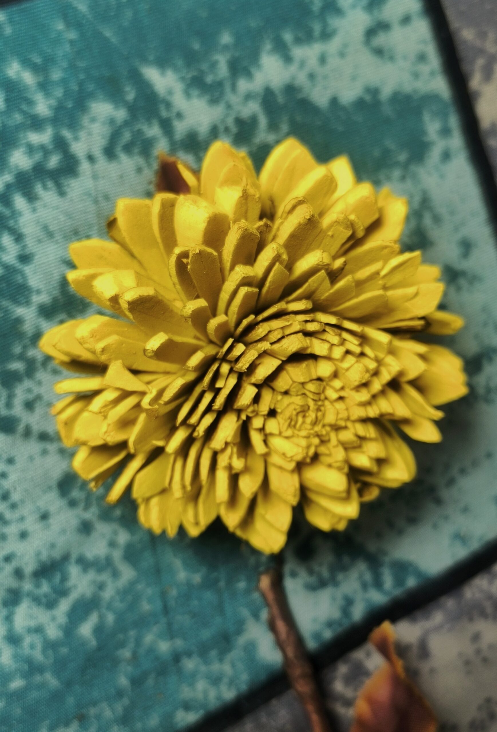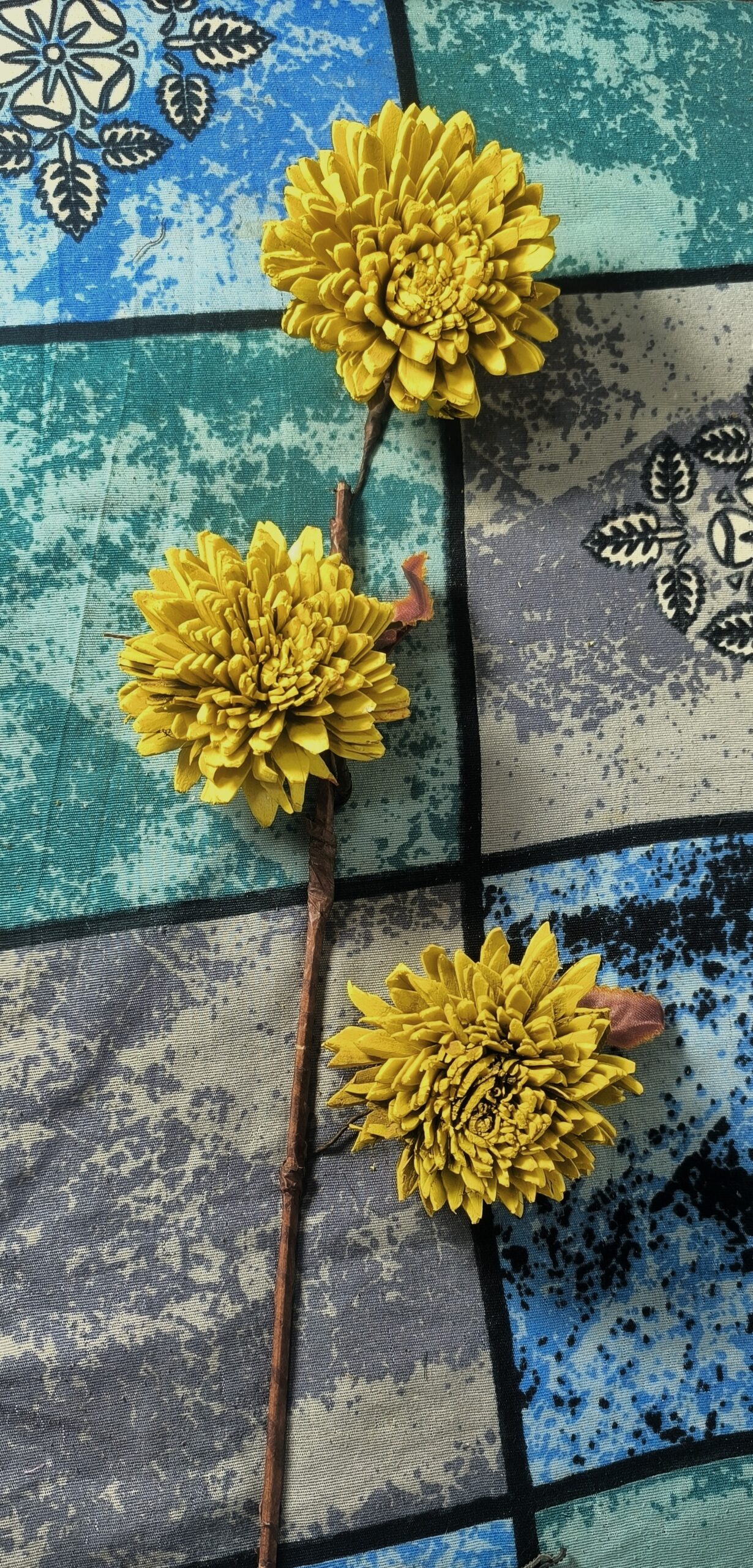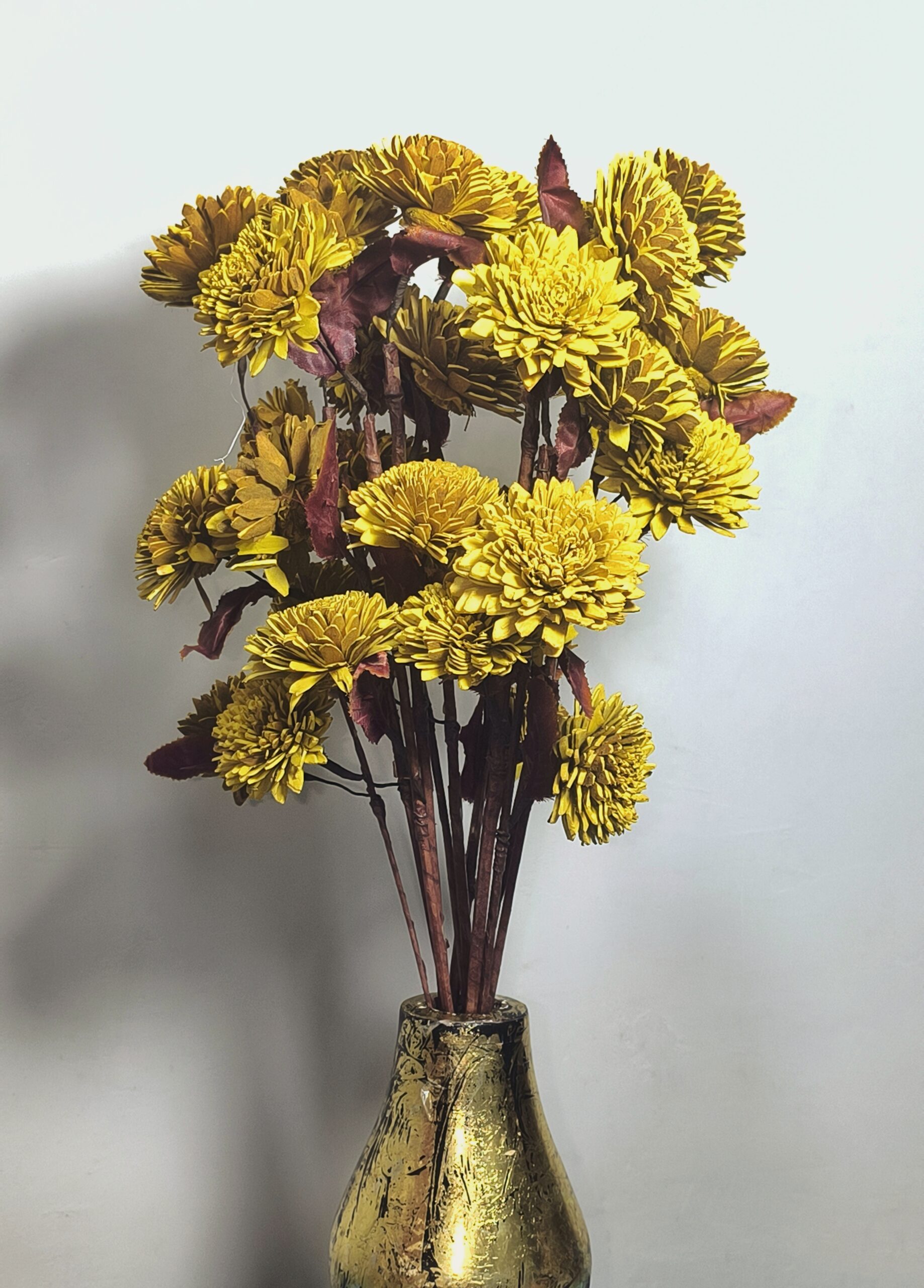 Brighten your décor with these handcrafted yellow Sola Wood Chrysanthemum stems, carefully carved from natural sola wood and hand-dyed in a vibrant golden-yellow shade. Each bloom features multiple layered petals, creating a full, realistic chrysanthemum (mum) appearance that adds warmth and elegance to any space.
